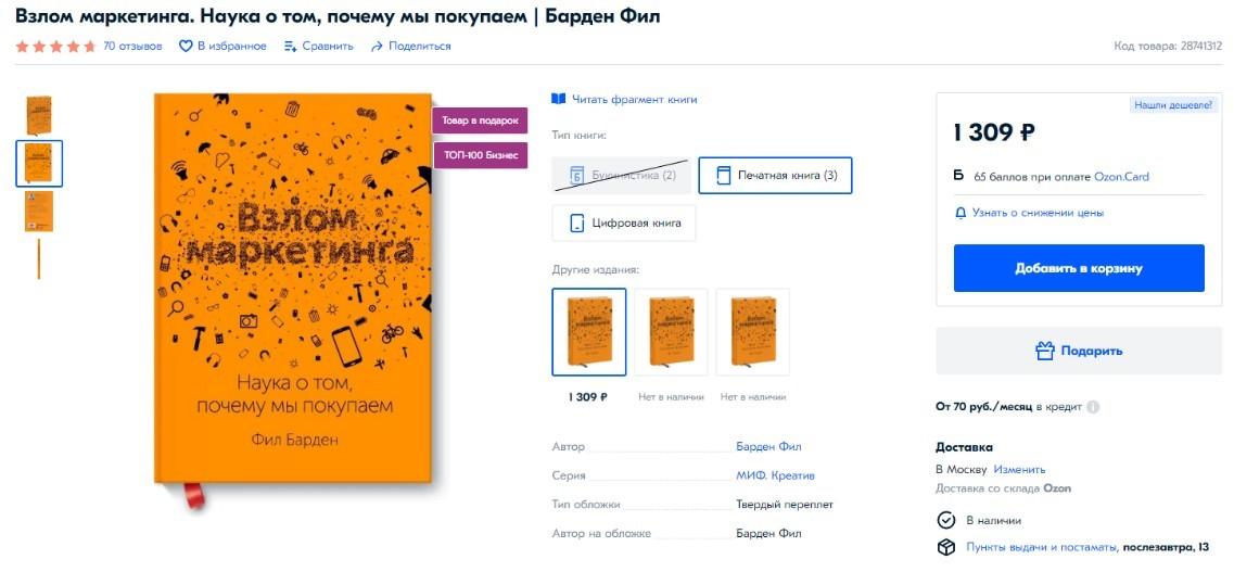 В книге “Взлом маркетинга. Наука о том, почему мы покупаем” Бардена Ф. рассказывается, как мы бессознательно каждый день делаем выбор. Приобрести ее можно здесь
