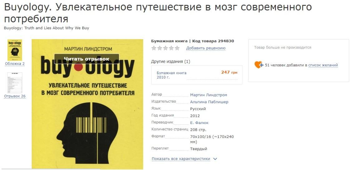 Книга “Buy-ology. Увлекательное путешествие в мозг современного потребителя” М. Линдстром ответит на многие вопросы, включая почему людей, непременно, привлекает товар, которого нет в достаточном количестве. Бумажную книгу можно заказать в этом магазине.