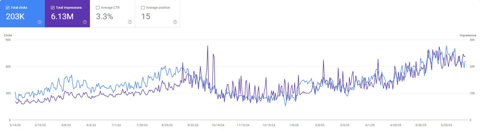 Систематична робота над сайтом, включаючи технічну оптимізацію, оновлення контенту та стратегічний аналіз, а також регулярна перевірка результатів впроваджених змін, призвели до стабільного зростання органічного трафіку та підвищення позицій у пошуковій видачі з місяця в місяць. Такий підхід дозволяє не просто підтримувати, а системно розвивати онлайн-присутність. Ви також можете залучати нових клієнтів за допомогою перевірених і ефективних рішень, які ми підбираємо індивідуально з урахуванням специфіки вашого бізнесу і цілей просування.