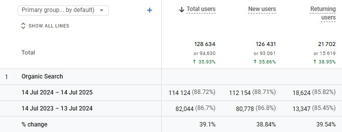 Трафік з органічної видачі за рік зріс на 39,1% і є основним джерелом трафіку на сайт.