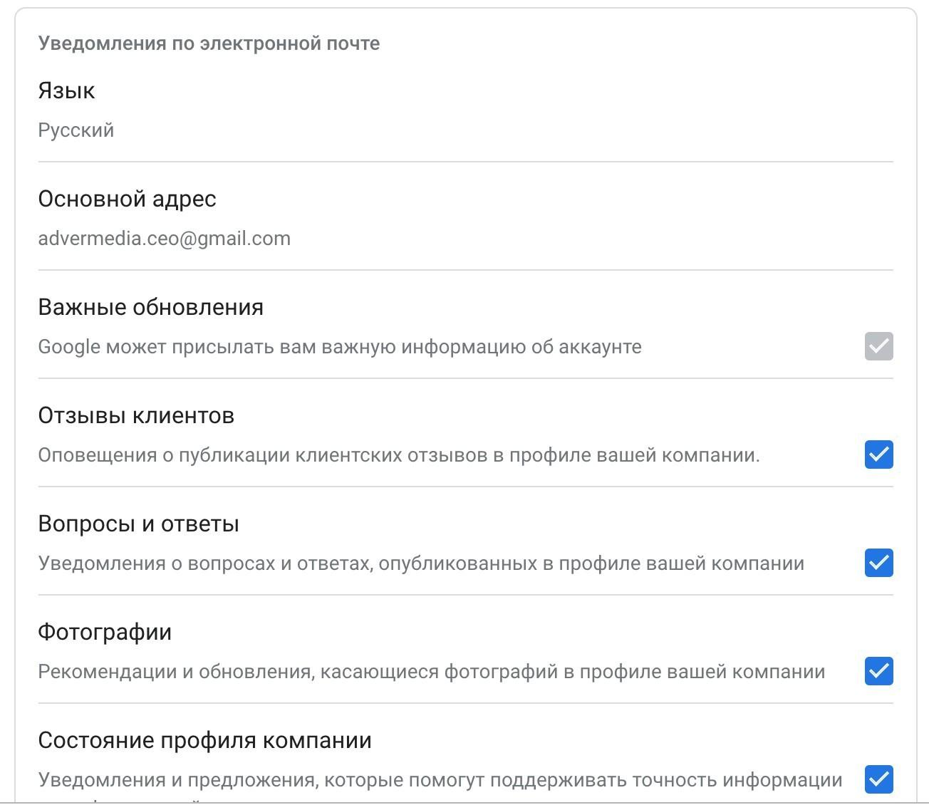 - Полнота заполнения информации о компании в Google Мой бизнес