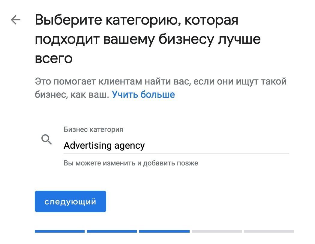 - Выбор категории (ее название желательно указать в название компании)