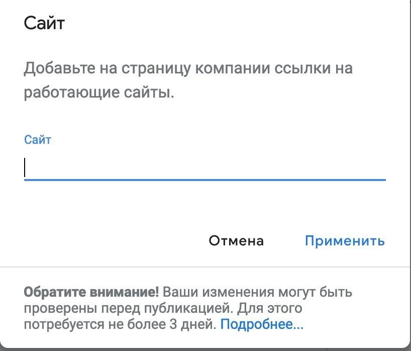 - Добавьте сайт вашей фирмы. Если у сайта есть позиции в Google – это положительно повлияет на вашу страницу в Google Картах.