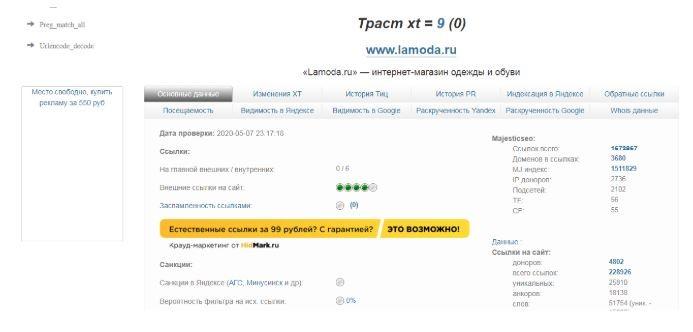 Траст – мера доверия к сайту. На этот показатель влияет достаточно много факторов, включая качество контента, объем и качество ссылочной массы, объем исходящих ссылок сайта, возраст домена, трафик и другие показатели. Проверить данный показатель можно через следующие сервисы: