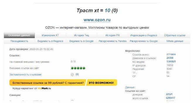 Ссылочный профиль – комплекс всех ссылок на домен. Другое название «ссылочная масса». Проверить ее для собственного сайта можно через панели вебмастеров. А вот для стороннего ресурса, который выступает в роли донора, можно использовать подходящий сервис. К примеру: