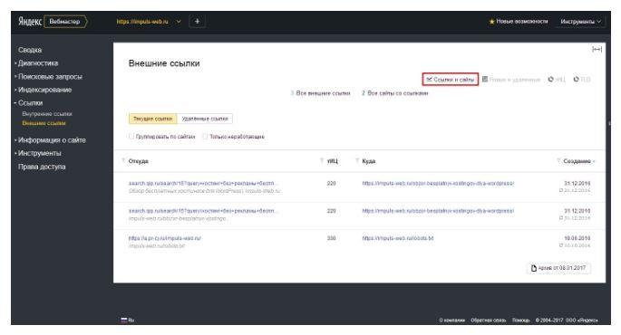 Через данную панель легко проверить количество внешних ссылок на собственный сайт, проиндексированных Яндексом. Общий функционал несколько больше, чем в Google.