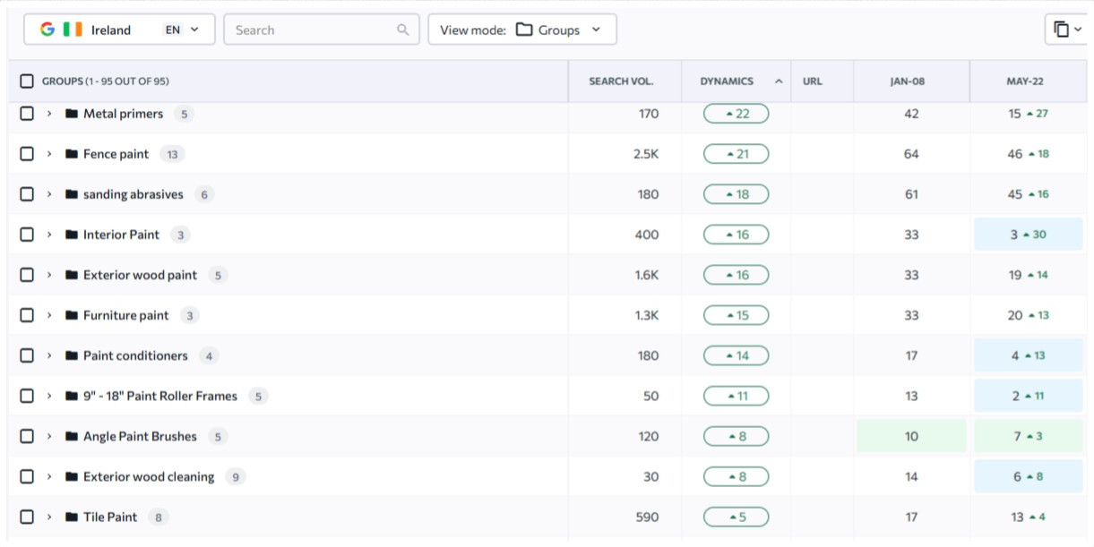 Через 6 місяців після запуску оновленого контенту органічний трафік зріс з 1280 до 4067 переходів на місяць. Найактивніший просування показали сторінки за категоріями «фарба для ПВХ», «фарборозпилювачі Graco» і «фарба для під’їзних шляхів».
