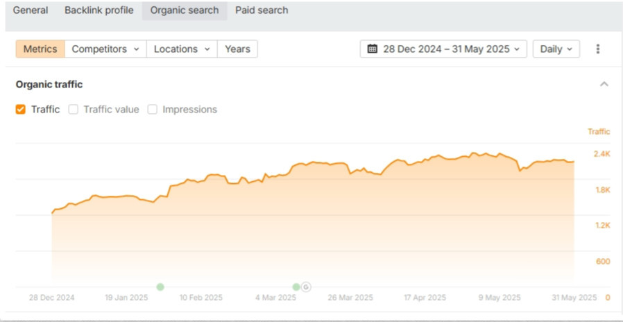 Робота з блогом додала ще +1500 переходів з інформаційного пошуку. Видимість сайту стабільно зростає, позиції за пріоритетними ключами — в ТОП-5.