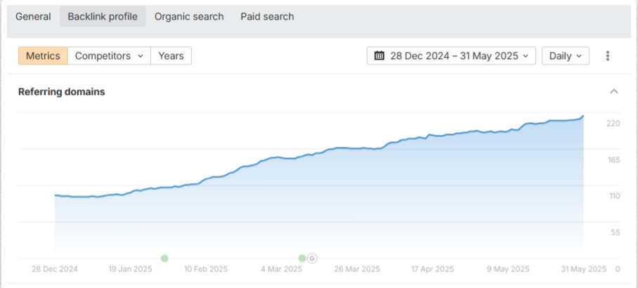 Аналіз посилального профілю конкурентів дозволив сформувати власну стратегію розміщення: аутріч-статті, крауд-маркетинг.