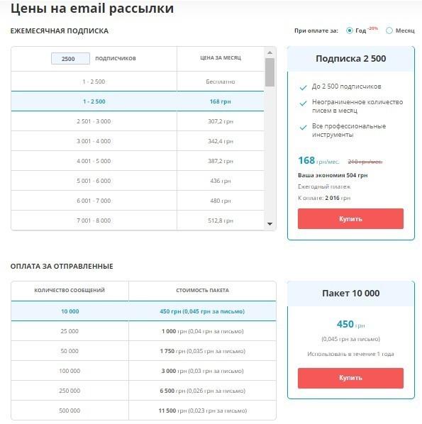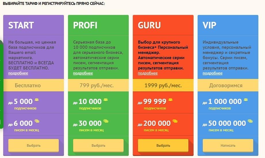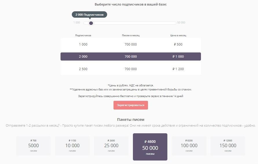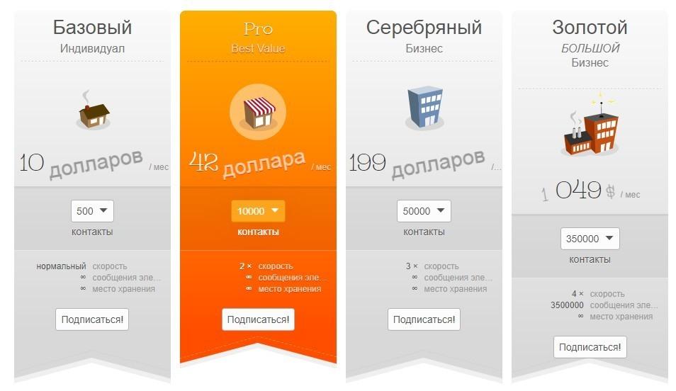 •         9 долларов в месяц за рассылку 2500 сообщений на 500 пользователей;