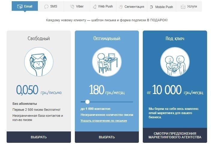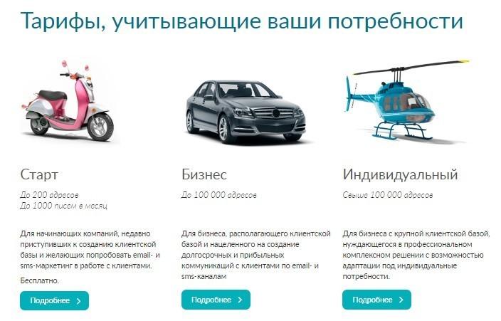 Платный сервис рассылки на русском языке, который предоставляет 30-дневную пробную версию. Есть несколько тарифных планов, которые отличаются набором функций. Этот сервис позволяет рассылать не только емейл-сообщения, но и смс, а также проводить опросы, но это уже выходит за рамки базового тарифа. Тариф «Быстрый старт» предполагает помощь в настройке рассылки и консультацию по дальнейшей работе.