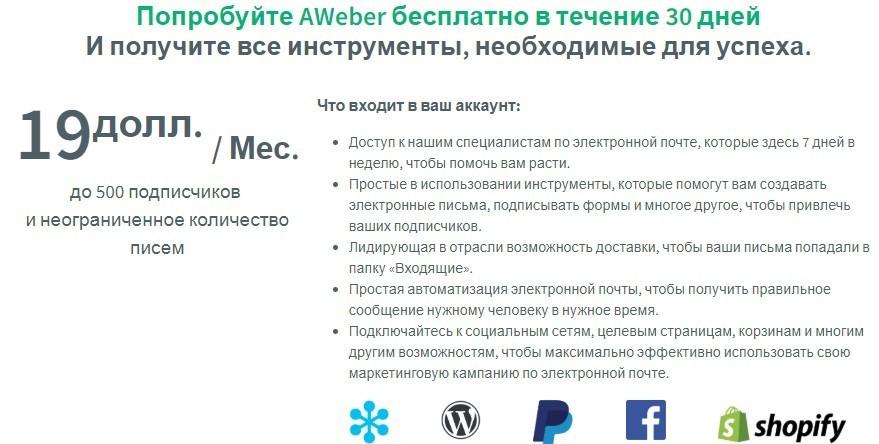 Особенностью платного пакета является отсутствие ограничения на количество сообщений. Да, именно так. За 19 долларов в месяц программа автоматически будет осуществлять рассылку на 500 подписчиков. В первый же месяц даётся пробный период всего за 1 доллар.
