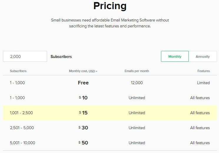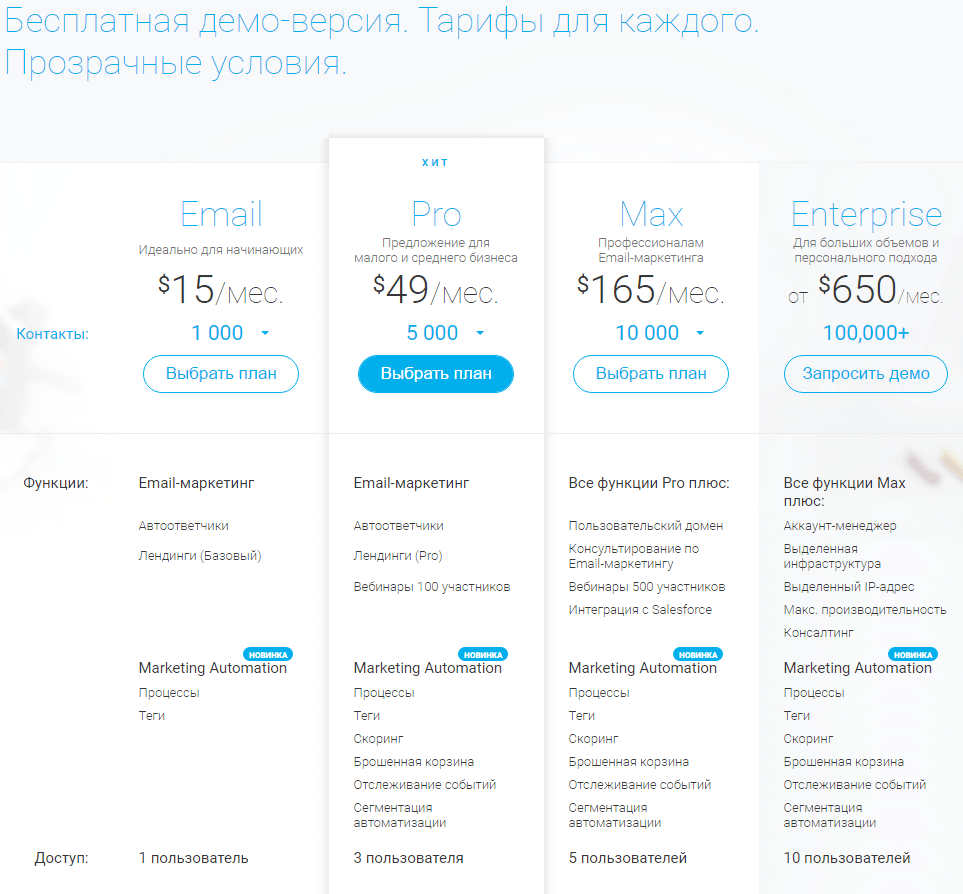 Этот сервис рассылок email бесплатно не работает, но, как и вышеуказанные программы, предоставляет пробную версию. Что касается платных тарифов, цены на них могут показаться высокими в сравнении с оппонентами, но зато вам не придется в дальнейшем оплачивать обновления или продлевать сроки пользования.