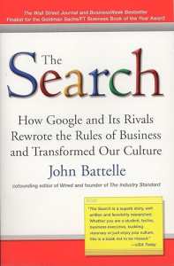 Говоря о книгах об интернет маркетинге нельзя не упомянуть Джона Баттеля. Его книга описывает, как изменения в работе поисковых систем, особенно Google, изменили не только бизнес-практики, но и культурные и социальные процессы. Баттель анализирует эволюцию поисковых систем и их влияние на маркетинг, бизнес и личную информацию.