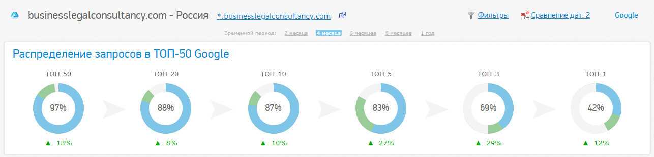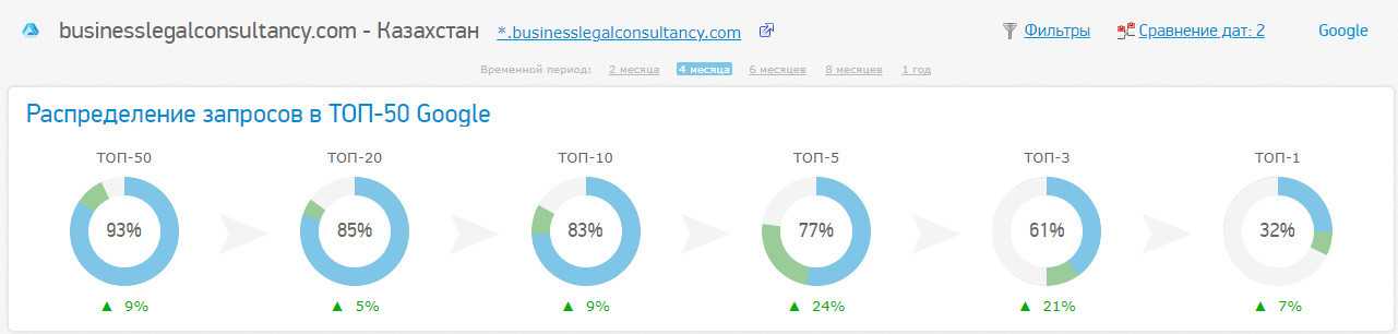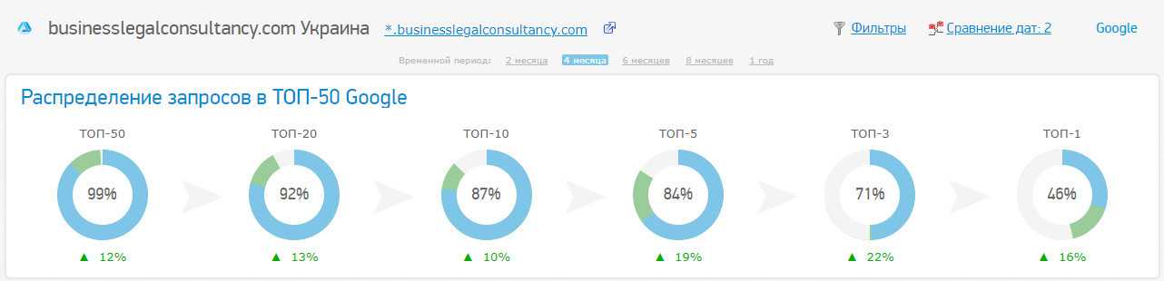 Была проведена работа со ссылочными профилями конкурентов, их детально проанализировали и вывели, исходя из анализа, ссылочную стратегию. Однако, ввиду небольшого бюджета решено было сконцентрироваться на крауд-маркетинге ежемесячно, а также закупке 2-3 качественных аутрич-ссылок раз в 3-4 месяца.