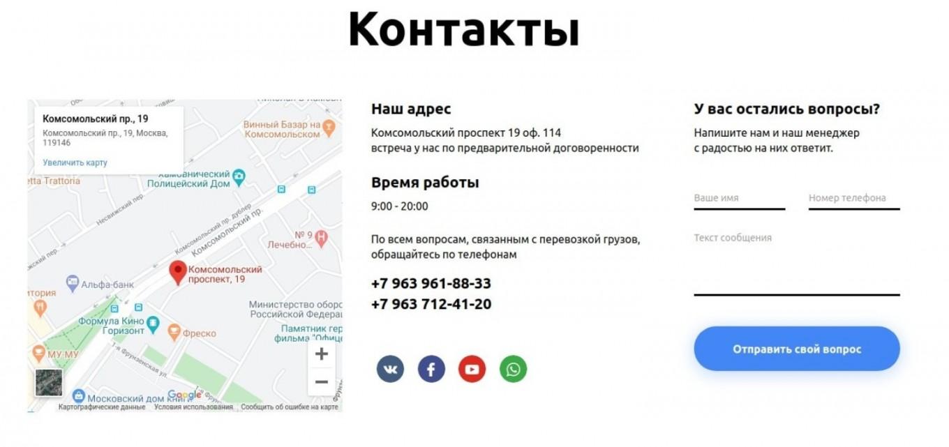 - Контакты и условия обслуживания. Пользователь сразу должен понять, на какой сайт он попал. Обязательно должна присутствовать контактная информация, работающая обратная связь, страница «О нас», условия оплаты/доставки. Также необходимо обеспечить пользователя разными каналами для связи с вами: чат, мессенджеры, телефоны, форма обратной связи, форма заказа звонка.